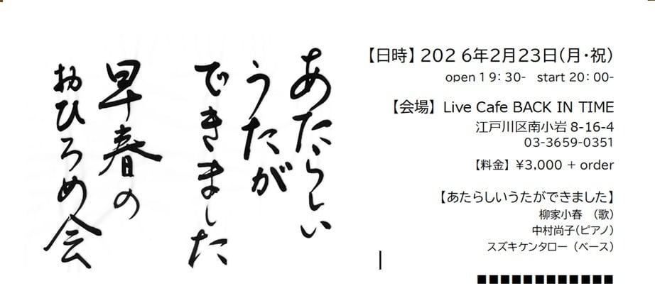 2/20 金 14:00オープン/14:30スタート &